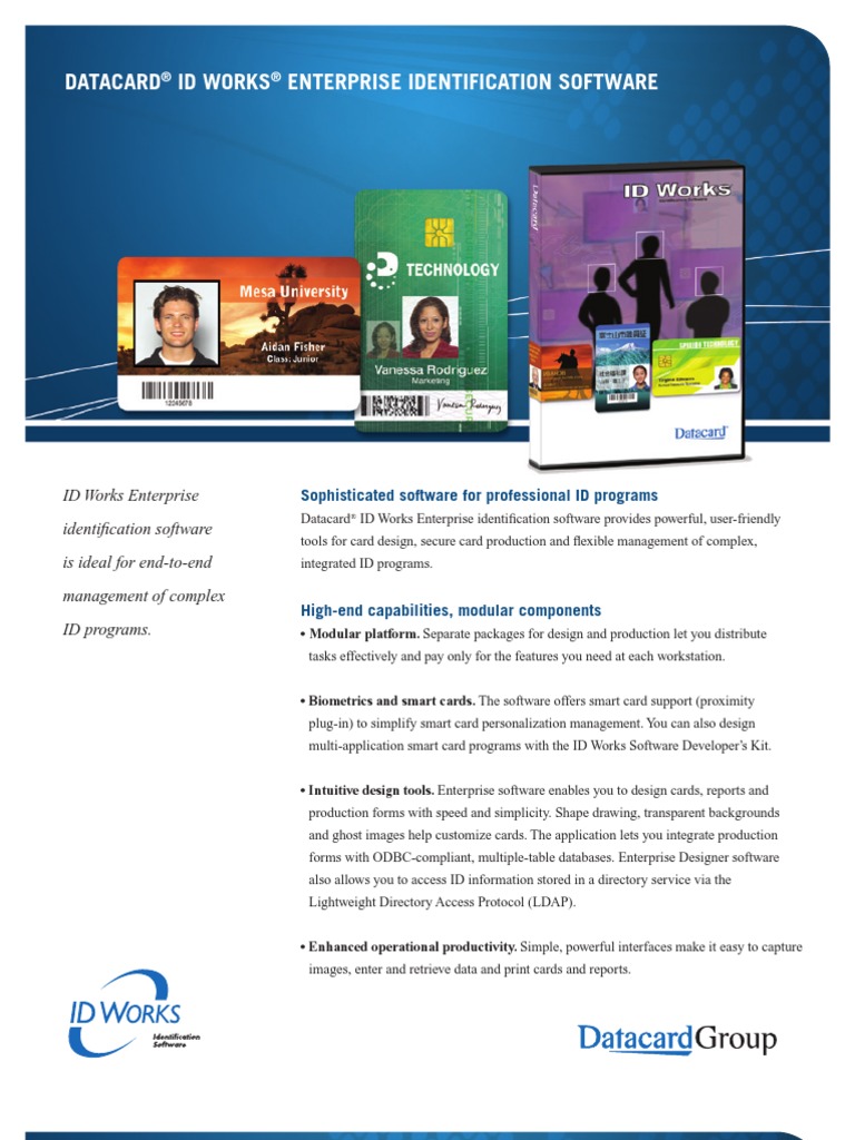 You can increase security and reduce costs per workstation by allowing employees not involved in identification ywain or production to design cards and reports. Datacard ID Works Basic. Datacard ID Works Standard.